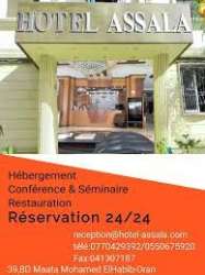 L’hôtel Assala est situé sur le boulevard Maâta, au coeur d'Oran. Les principaux sites touristiques, administratifs et locaux sont facilement accessibles depuis l’hôtel, à savoir : la Wilaya d'Oran (15 mn), le port d'Oran (10 mn), la gare (05 mn) et l'aéroport (20 mn). Les 80 chambres et suites disposent d’un intérieur élégant et offrent tout le confort nécessaire pour passer un agréable séjour: climatisation avec réglage individuel, TV écran plat, bureau, coffre-fort, minibar, salle de bain bien équipée avec douche et/ou baignoire, sèche-cheveux et miroir cosmétique. Accès gratuit au wifi haut débit et Petit déjeuner. Appels téléphoniques depuis la chambre, Cafétéria, Blanchisserie sur place, Conciergerie, service d'étage disponible 24h/24 et navette. Chambres accessibles aux personnes à mobilité réduite.